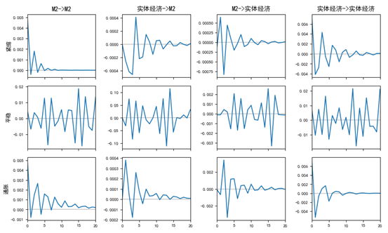 下图可以看出紧缩和通胀两种市场状态下的脉冲响应结果存在差异;