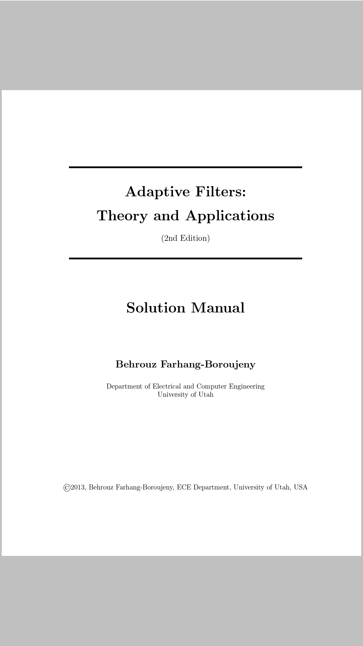 你好,请问你还有 自适应滤波器原理及Matlab仿真应用 这本书的习题手册吗?
