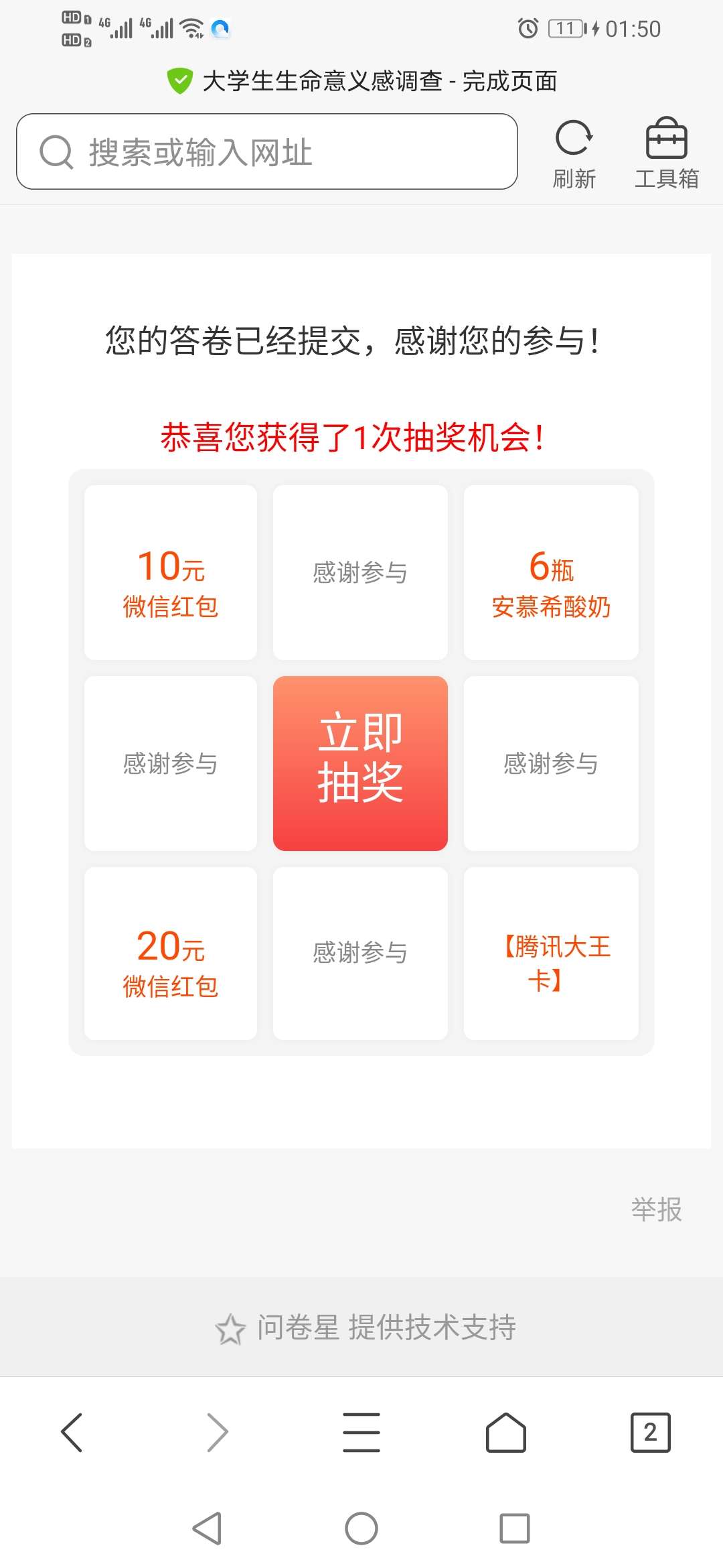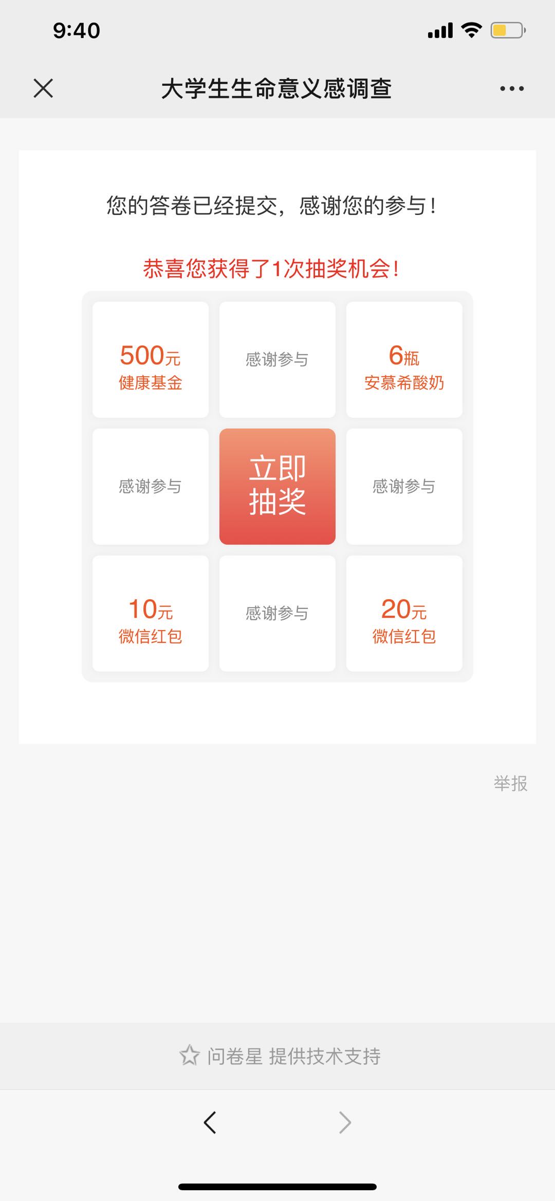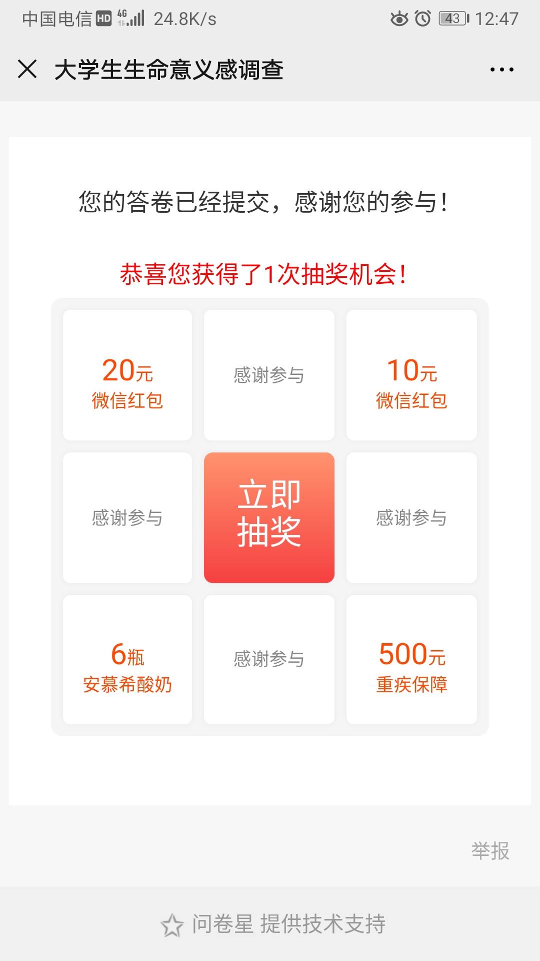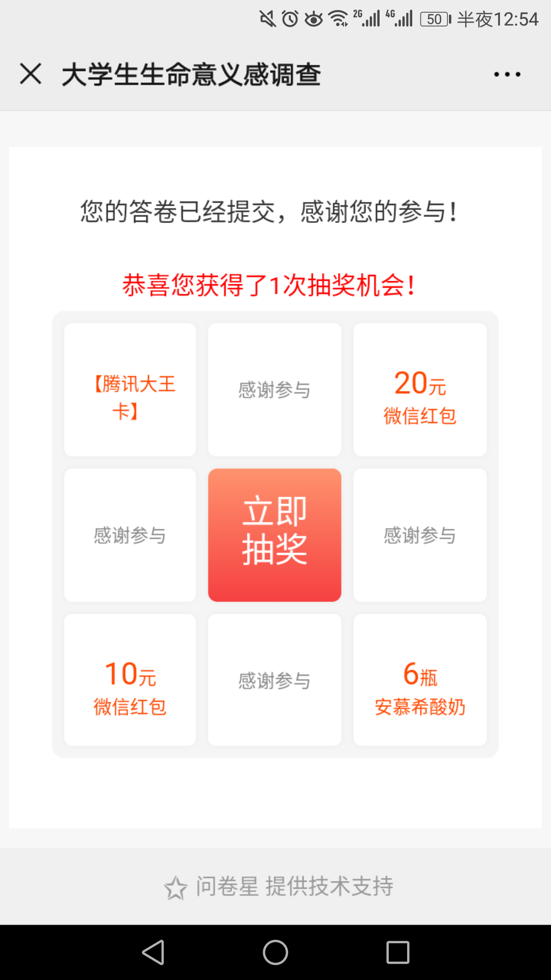 问卷填写完毕截图