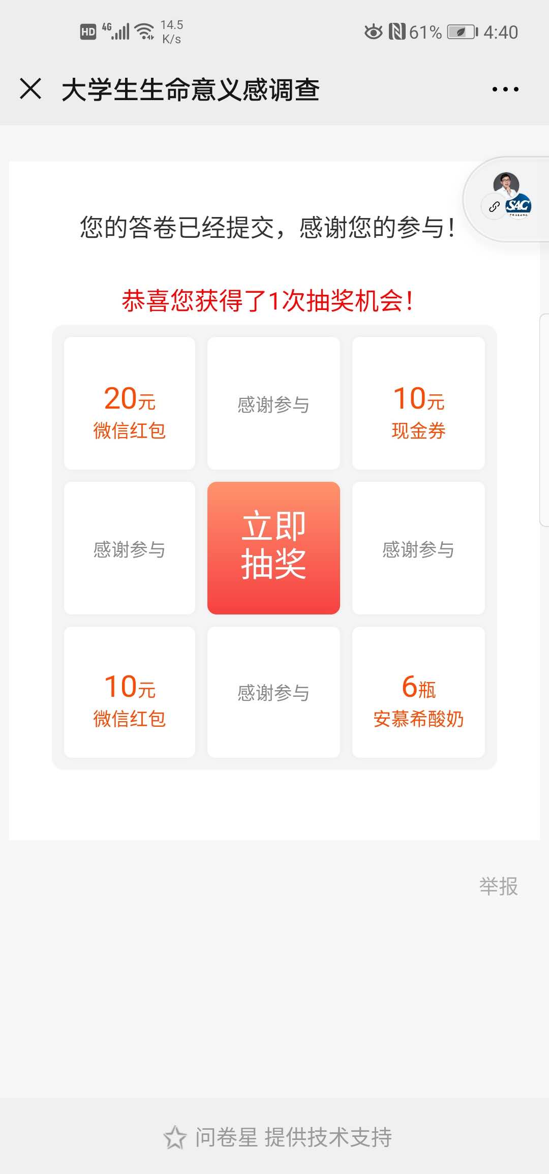 已经填写问券调查