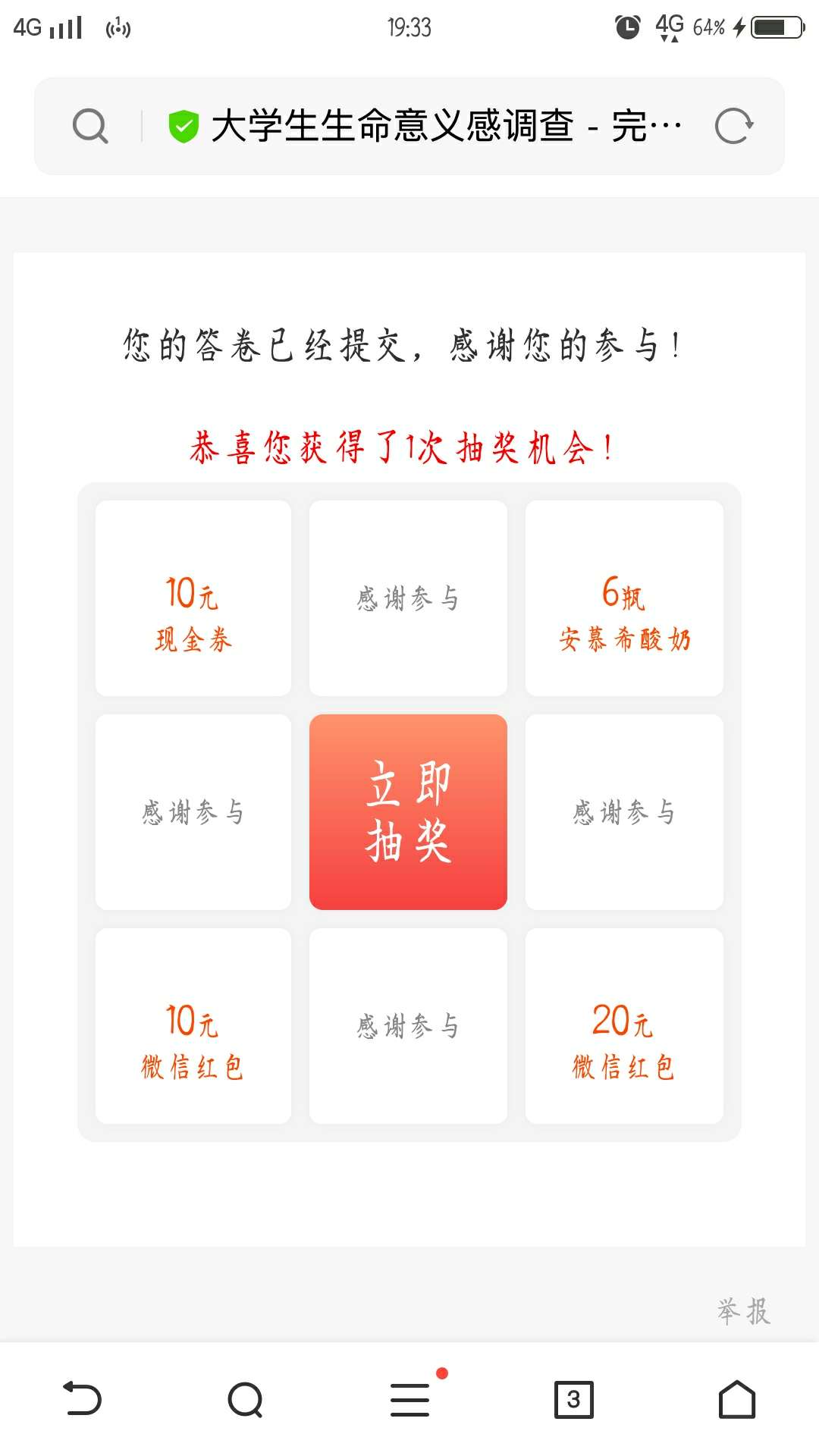 Cbiubiubiu 发表于 2020-4-20 09:22 这是一份关于 大学生生命意义感 的调查问卷。要求大学生填写。填写时间在4分钟左右。 请填好的小伙伴在评论 ...