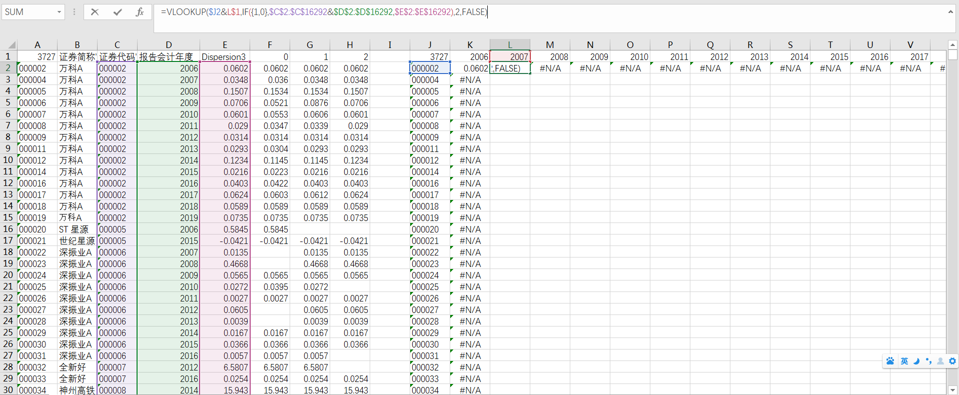shuotao2817 发表于 2020-4-21 00:38 =VLOOKUP(J2&L1,IF({1,0},$C$2:$C$16292&$D$2:$D$16292,$E$2:$E$16292),2,FALSE) 绝对引用才能使引用的区间 ...