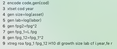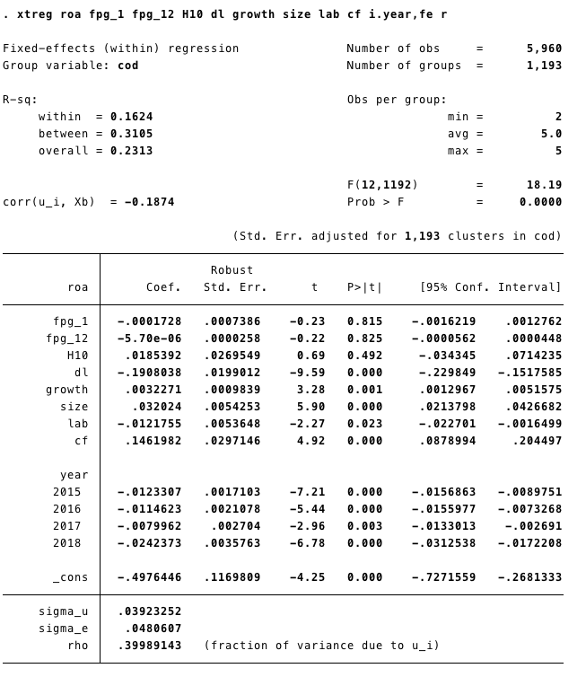 参照其他论文做法,将解释变量fpg及其平方项取滞后一期再回归