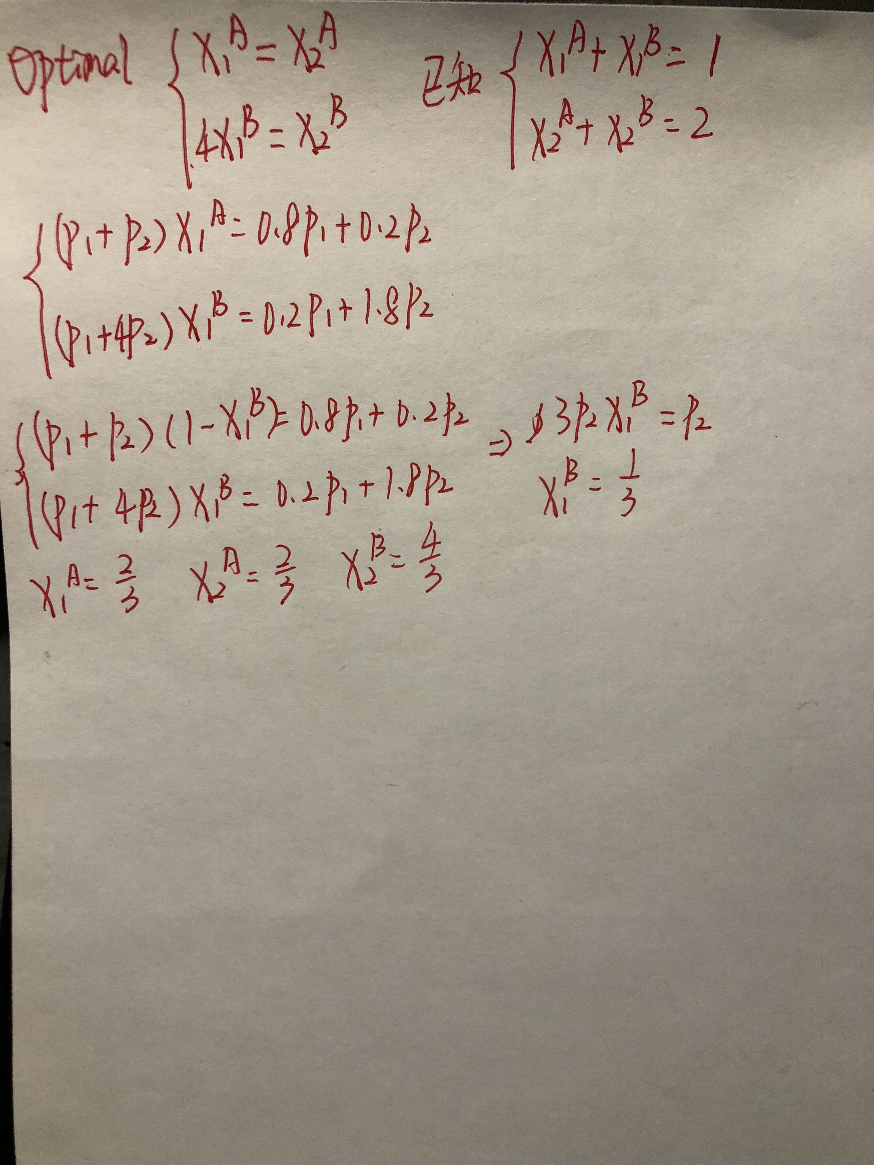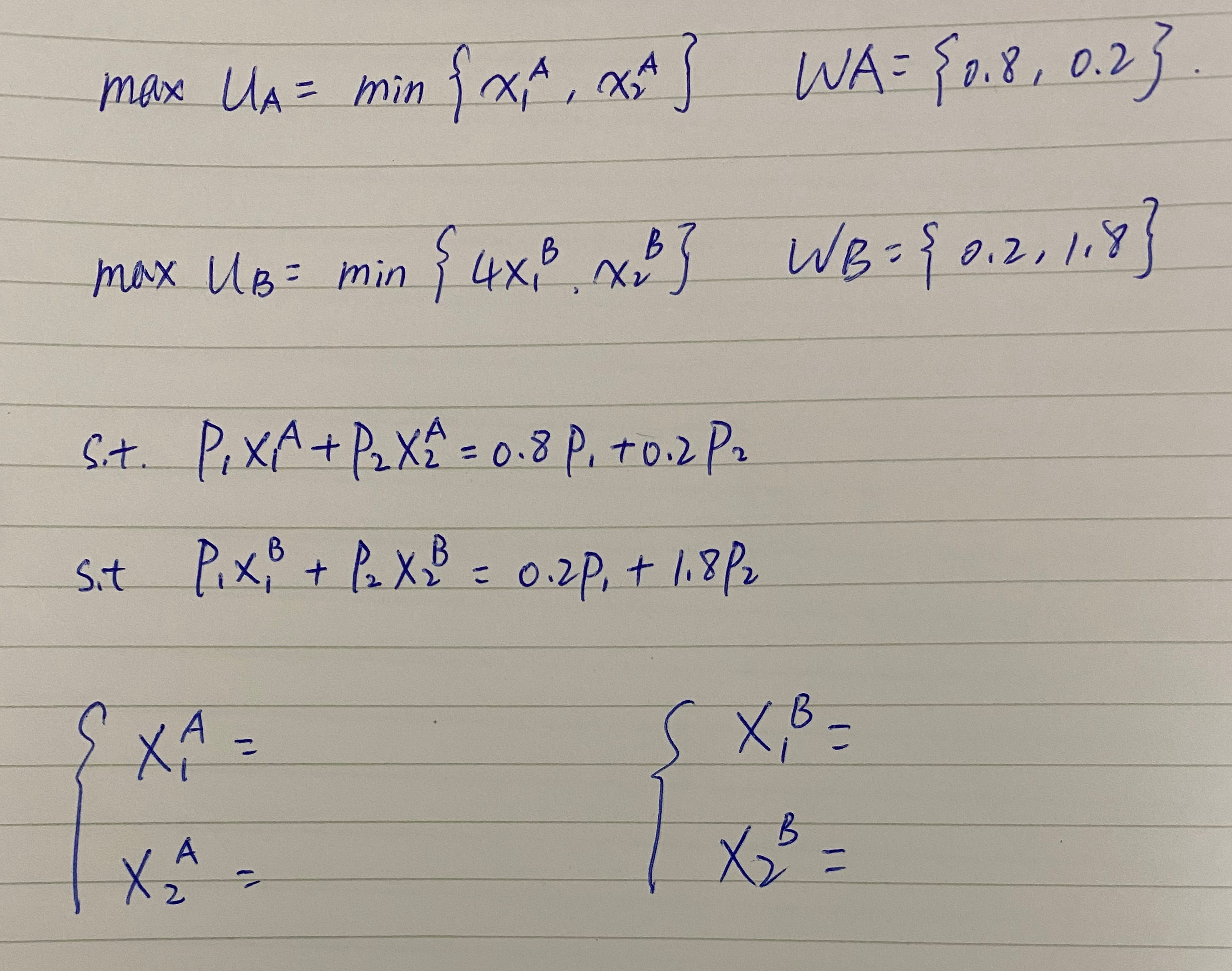 s.t. P1 X1A + P2 X2A = 0.8P1 +0.2P2 s.t. P1 X1B + P2 X2B = 0.2P1 +1.8P2