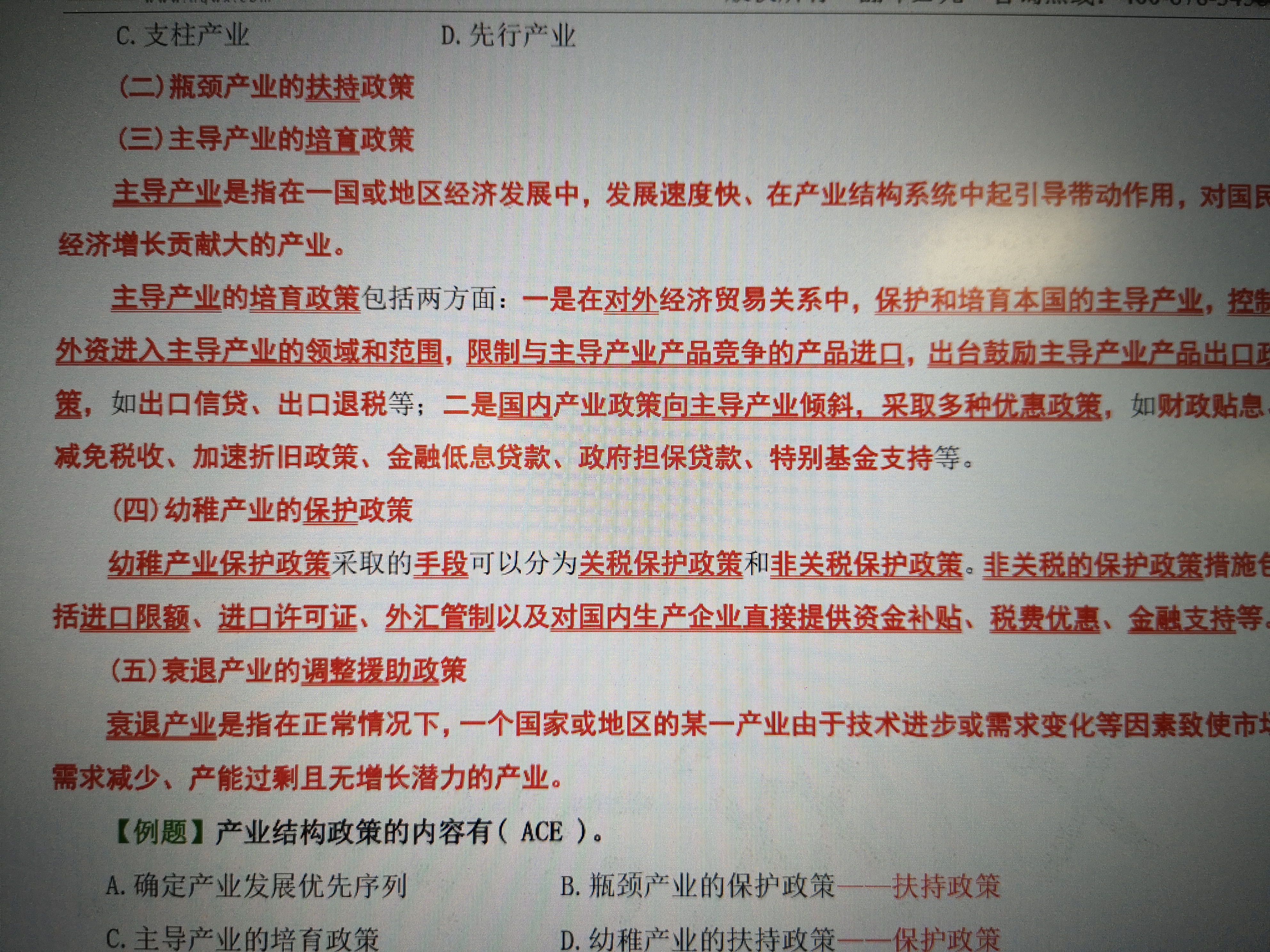 复习“瓶颈产业的扶持政策、主导产业的培育政策、幼稚产业的保护政策、衰退产业的调整援助政策”