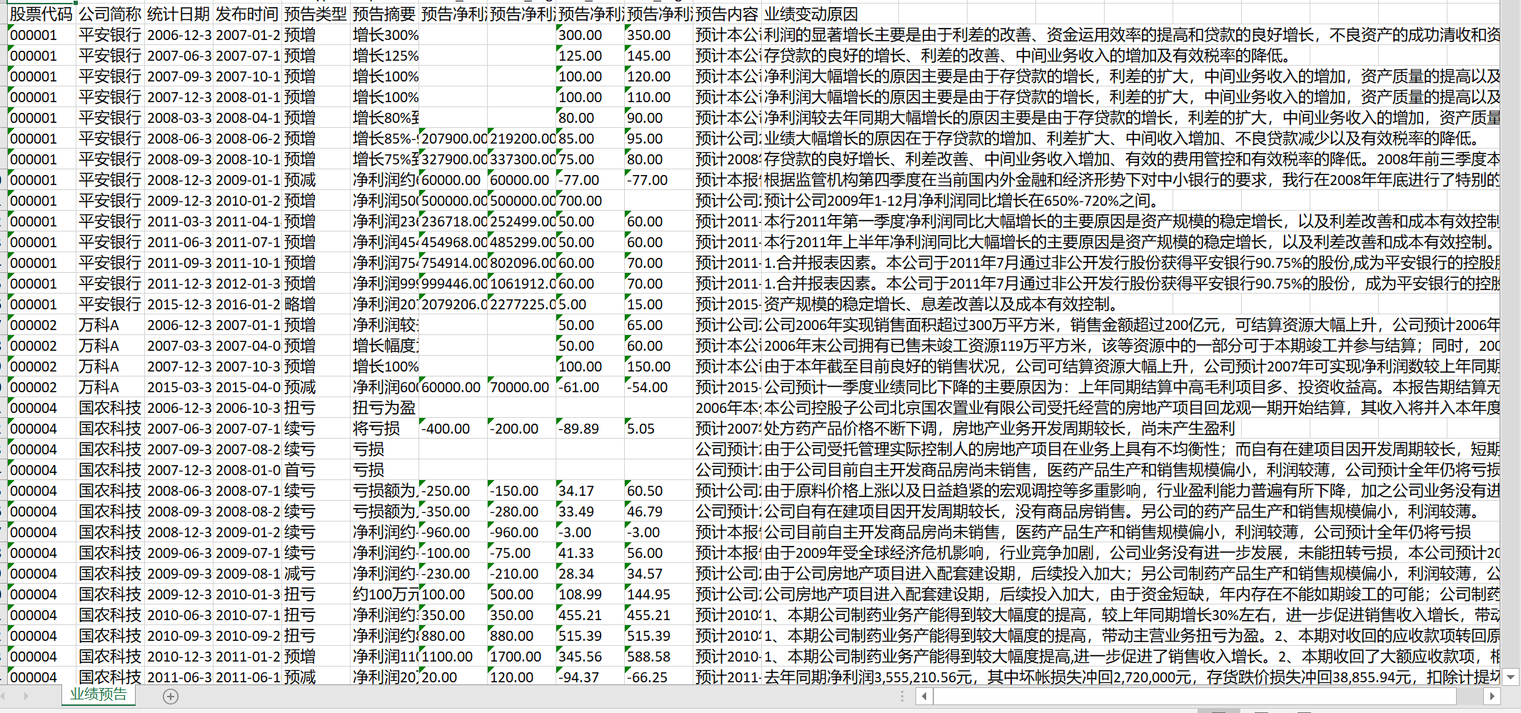 2.业绩预告(70186条)