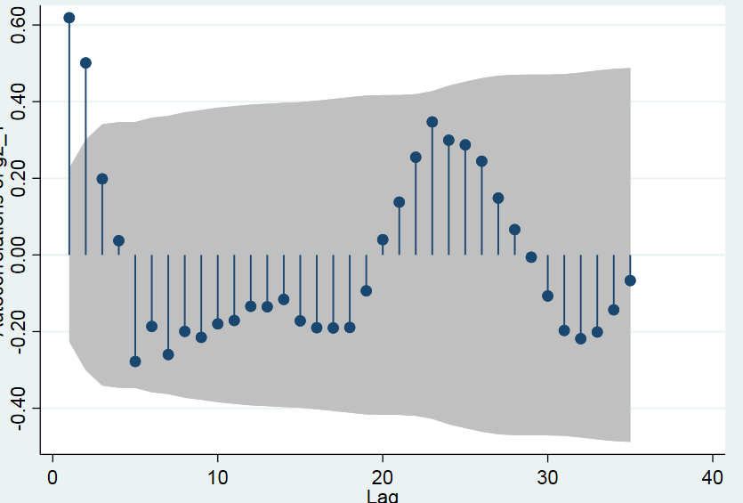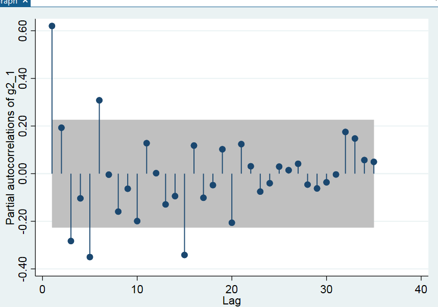 请教下大佬们,ARIMA模型截尾与拖尾的判别方法,我理解的是:截尾是自相关数与偏自相关数大幅波动,拖尾是系数逐渐下降并围绕0做小波动。能以下pac ac 图举例么?谢谢