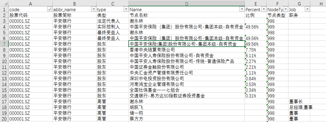 对所有沪深A股上市公司,抓取相关的企业图谱数据,可用于企业网络研究,挖掘深层信息。其数据量总量为:525290条数据,类型包括:法定代表人、实际控制人、最终受益人、股东、高管、对外投资、控股企业、对外担保、分支机构、供应商、客户、历史对外投资、历史法人、历史股东,共14种类型。