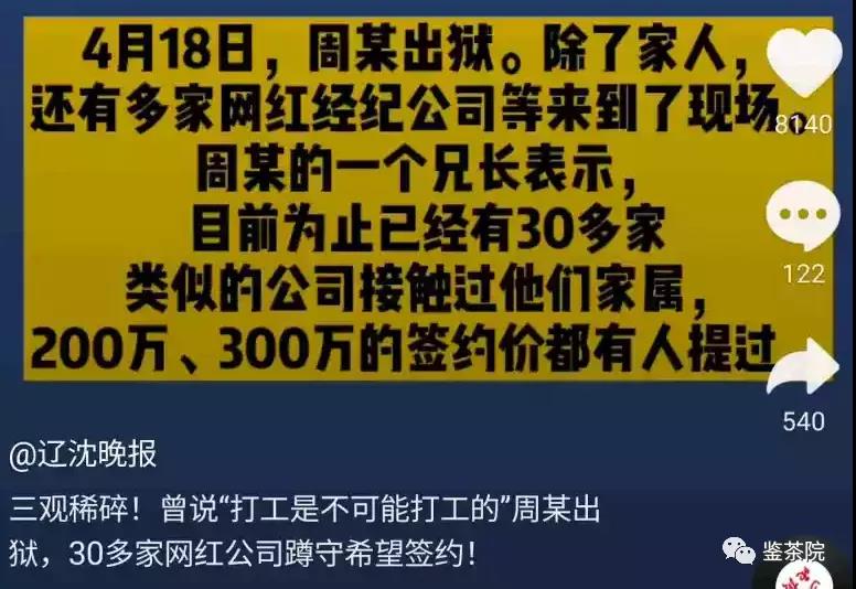 而这就这么一个不打工男,出来后30多家网红公司纷纷跑去签约,价格甚至开到了两三百万,被主流媒体痛批“病的不轻”。