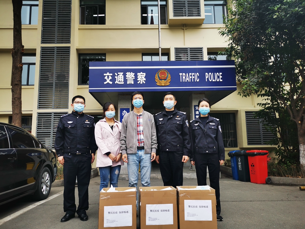 捐赠活动中,成都市公安局交通管理局第二分局党总支委员、纪检员汪东代表分局全体民警向爱心企业的捐赠表示感谢,同时向大家介绍了分局在队伍建设、交通管理、规范执法、疫情防控阻击战等方面的工作情况。他表示:口罩是大家工作的必需品,消耗量比较大。爱心企业四川电信天虎云商和成都汇好商贸有限公司的及时捐赠,不仅缓解了我们物资短缺的压力,还温暖了所有奋战在一线的民辅警的心,更体现了全民众志成城、抗击疫情的决心。我们分局全体民警要把四川电信天虎云商、成都汇好商贸有限公司和社会各界的关心支持,转化成为人民群众疏堵保畅的决心和动力,要充分发挥道路交通管理工作主力军作用,努力使群众出行更安全、更畅通,使群众办事更便捷、更满意。同时他指出,新冠疫情还未真正结束,新的“无症状感染者和外来输入病例”防范挑战又来了,分局一定要围绕“为人民群众服务,为经济建设服务,为公安工作全局服务”的指导思想,进一步压实工作责任,运用科学管理理念,规范工作流程,完善制度建设,创新服务方式,冲在疫情防控的最前沿,抓好滚动排查,加强交通管控以及复工复课等重点工作,坚决打好疫情防控阻击战。