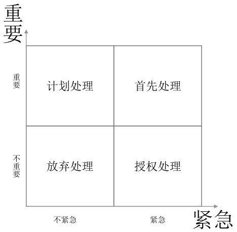 重要且紧急的事情要首先处理;重要但不紧急的事情可以按计划来处理,但千万不能等到事情变得紧急的时候再处理;紧急但不重要的事情可以授权给下属或者其他人去处理;不重要也不紧急的事情,或者没有必要去做的事情,能推掉就推掉吧。