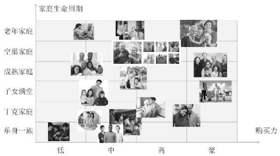 在分类的时候可以有很多自己的创意。早在2004年,笔者作为万科“千亿元目标战略项目”的项目组长,帮助万科做了一个客户细分。当时我们向美国的房地产公司老大——普尔特房屋公司学习。普尔特在对客户分类时有一种特殊的维度——家庭生命周期,其将客户分为单身家庭、丁克家庭、有小孩的家庭、有成年孩子的家庭和空巢家庭,家庭在不同阶段就会有不同的住房需求。2004年,当时中国人的理念还是一个家庭一辈子就买一套房子,但是我们进行一个大胆的假设:未来中国的家庭也会根据不同的家庭阶段换不同的房子,并且这会成为常态,因此,我们把万科的客户细分加入一个新的维度——用户家庭生命周期,如下图所示。