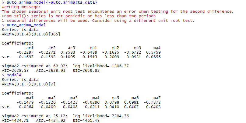 上面automodel是自动构建的,下面model4是自己差分处理后,根据ACF和PACF拟的,请问到底哪里有问题了呢?