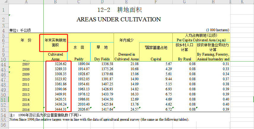 我在查找有关湖北省耕地面积的数据时发现这个问题,2017、2018年的数据跟之前的统计口径好像不一样。2017和2018年的数据跟国家统计局、湖北省自然资源厅的数据一致,而2017年之前都是采用年末实有耕地面积,前后差距很大,不知道这个是什么情况?我需要的是县级的数据,有没有哪位大神知道在哪里可以查询到最近十年湖北各县级的耕地面积呀(与2017、2018年保持一致的这个耕地面积)。感谢!!!
