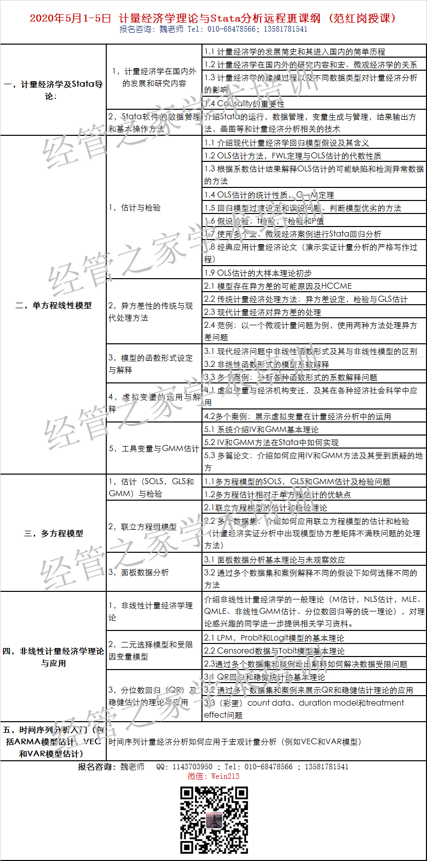 其中,理论学习目的增强学生对方法的理解和有效应用,授课将通过直观的解释和梗概性的证明来帮助大家有效掌握计量经济学核心理论。