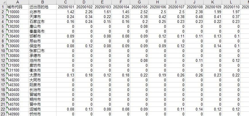 yeqian3063 发表于 2020-4-28 14:04 抓取百度迁徙数据,从20200101到20200331共三个月的地级市数据,共737份数据,包括中国各地级市的迁入来源地 ...