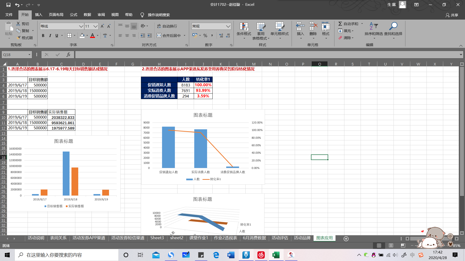 3,课堂案例完成活动评估工作表与图表应用工作表。(没有找到子弹图个漏斗图)