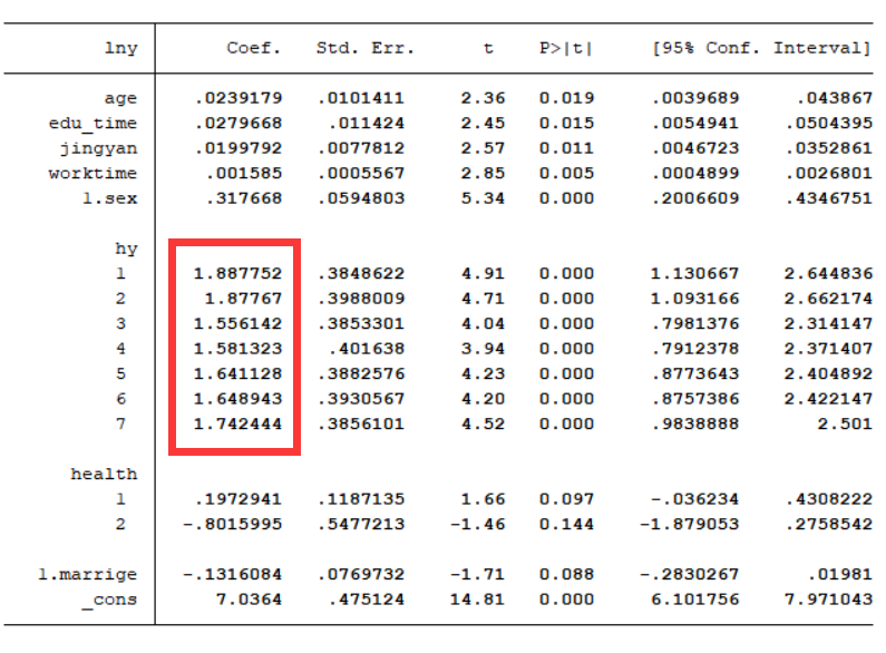 二,回归结果中各个hy的系数怎么解释