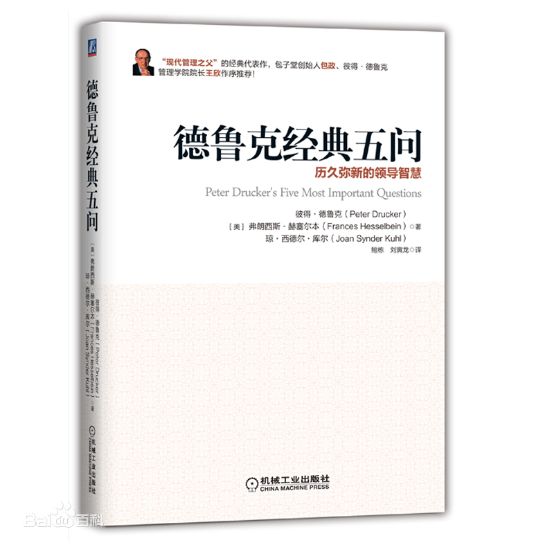 在本书中,20位来自不同领域的成功者从各自不同的视角,并通过对这些思想的实践告诉我们,德鲁克的管理哲学依旧是当今商业社会的基本行动指南。对当下的企业领导者和有志成为出色管理者的人才来说,《德鲁克经典五问》一书都会让他们有茅塞顿开之感,帮助他们以最简洁的策略认识自己的行为和动机,并为他们自己及其组织走向光明的未来奠定坚实的基础。 [1]