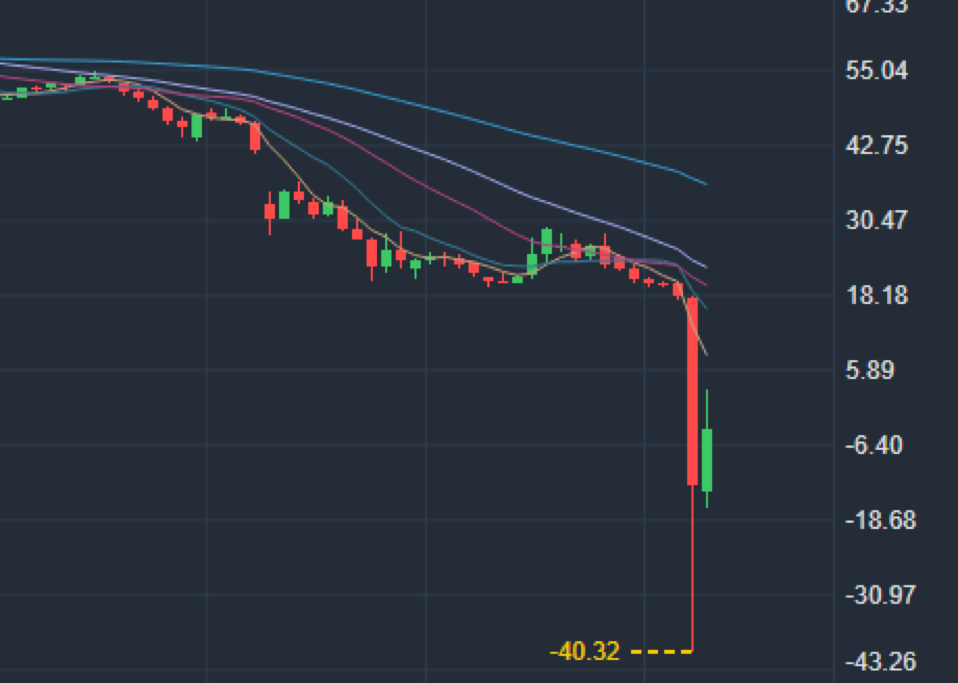 4月20日 WTI原油期货5月份合约的价格血崩式暴跌,最低竟然砸到了-40.32美金,并最终创下了历史首次跌至负值记录(-37.63美元/桶)。我们共同见证了史无前例的“负油价”。