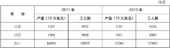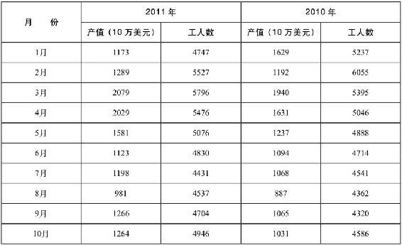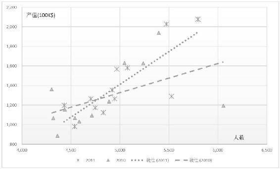 从数据统计结果来看,2011年的产值与工人数的相关性是0.80,远大于0.60的高相关性;而在2010年时,该相关性是0.51,属于中等相关性(0.3~0.6),那么可以认为2011年整体的人数控制方案效果比2010年得到显著的提高。