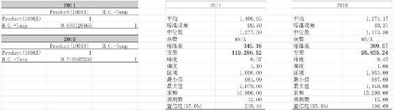 这种提高是因为生产的稳定性吗?可以对产值进行描述统计分析。从得到的结果看,2011年的标准差和方差都大于2010年,这在一定意义上说明,2011年产值的波动变化程度高于2010年。所以我们可以得出结论,尽管2011年生产订单的波动性增大了,但采用雇用更多临时工的方案让公司在人数控制上更加符合生产的波动,取得了较好的效果。