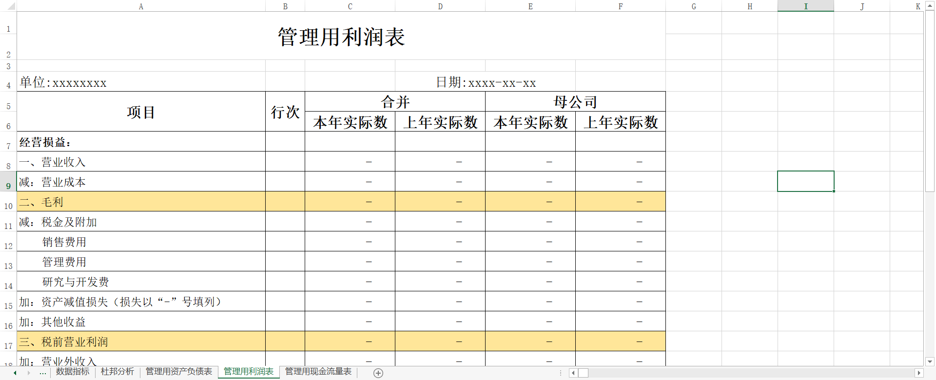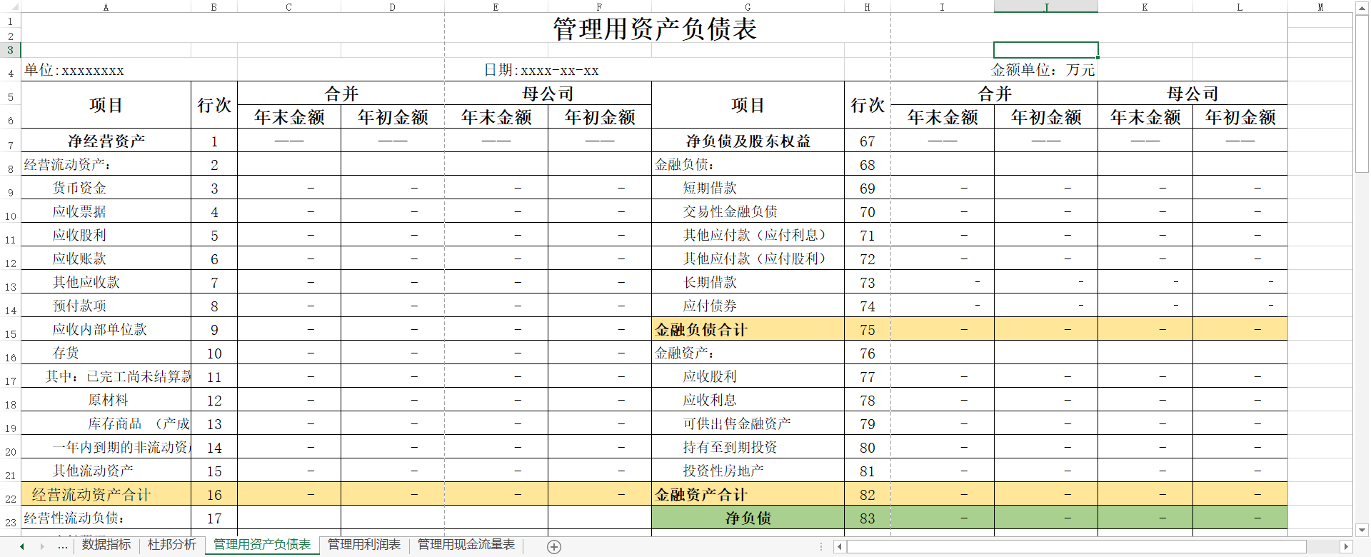 自己做了一份管理用报表和各项财务指标数据的模板要的自取