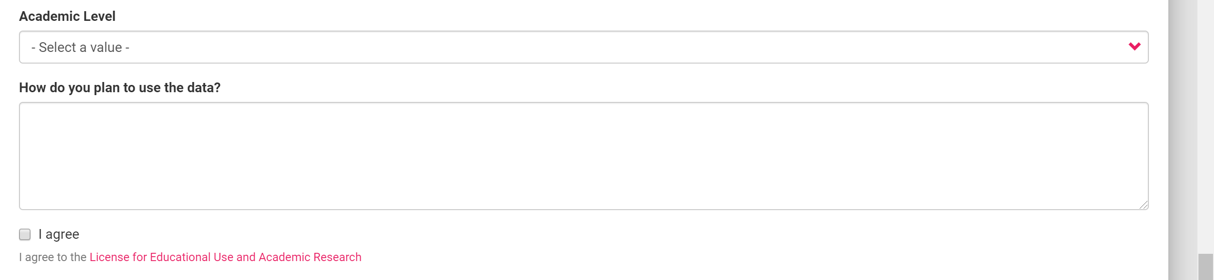 注册账号(教育邮箱)====>填写使用目的====>等待申请通过=====>根据邮件回复内容下载数据