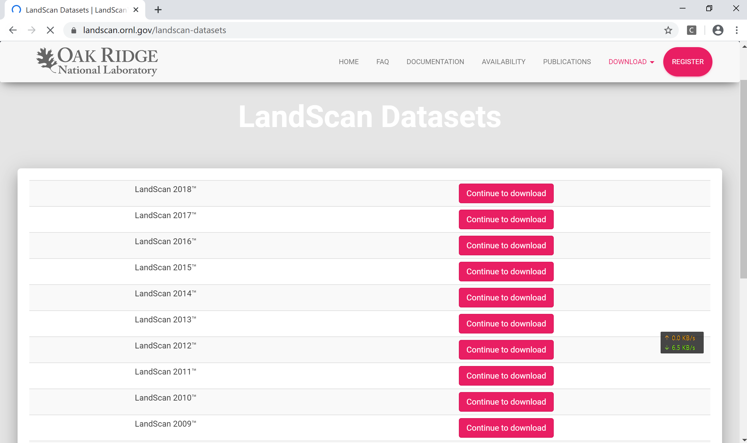 网络问题https://landscan.ornl.gov/ 该网址并没有被墙,可以正常访问。由于移动宽带的国际带宽较低,使用移动宽带的小伙伴基本无法注册账号(联通、电信宽带没有测试)。如果注册页面或下载速度较慢,可以使用以下方法: