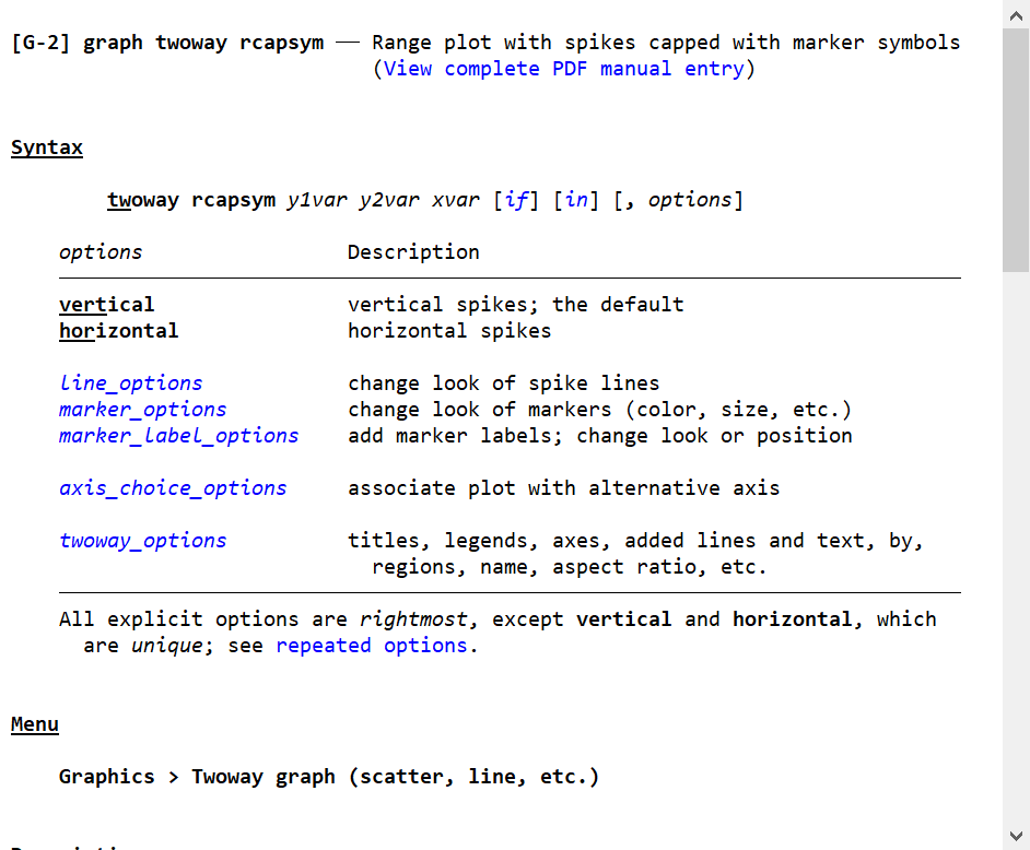 求问stata作图的rcapsym让做出的图是水平的horizontal的命令应该怎么写?格式怎样才对?