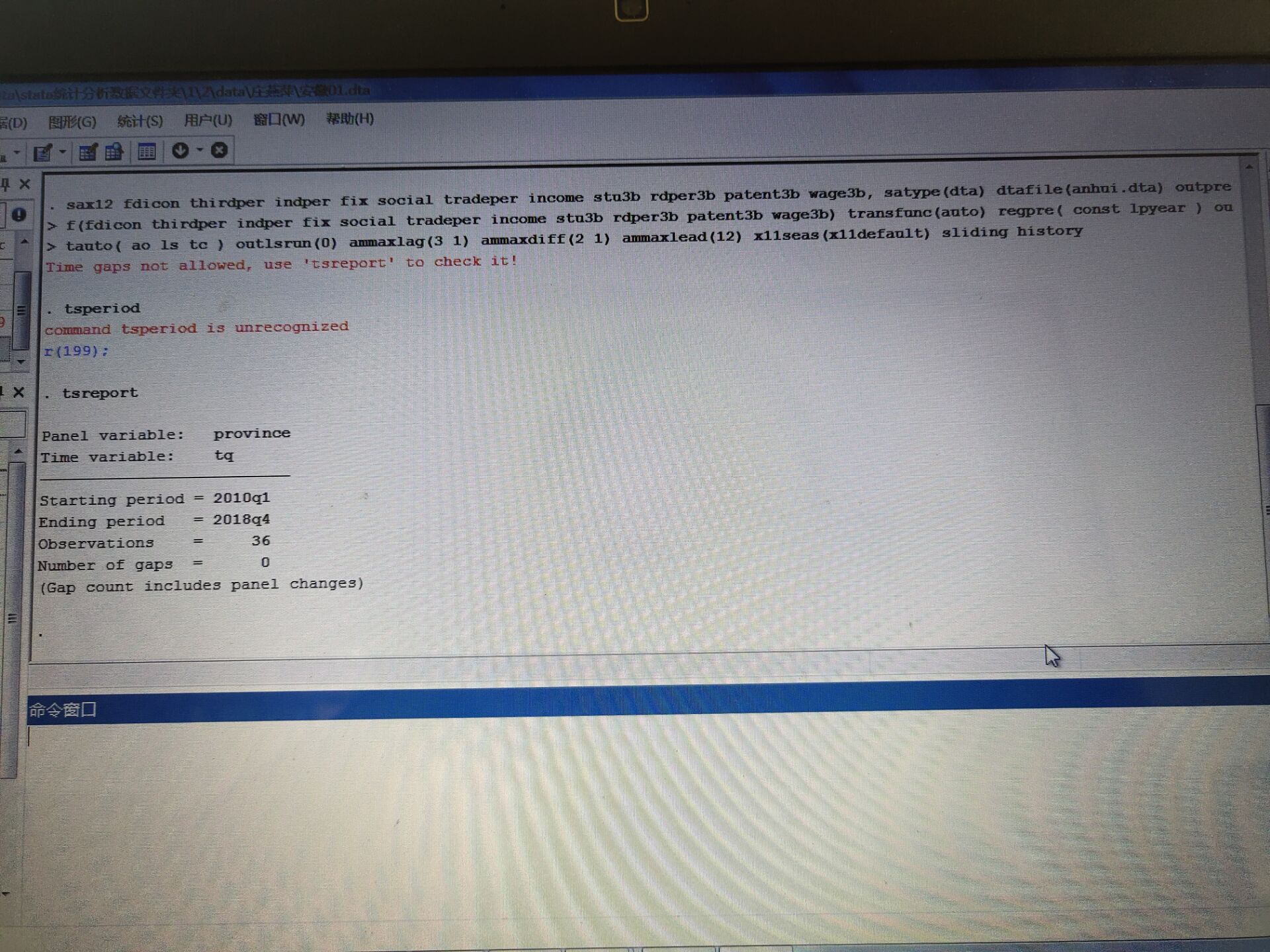 有关sax12命令的求助,单独对安徽省个经济指标进行季节调增。具体命令如下: db sax12