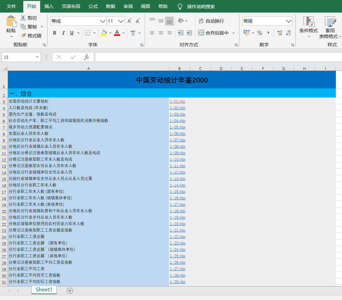 鉴于论坛没有中国劳动统计年鉴2000完整版Excel文件,故自己手动将其整理了出来,并且制作了索引总表,便于使用者查阅,同时附上高清彩版PDF便于对照。