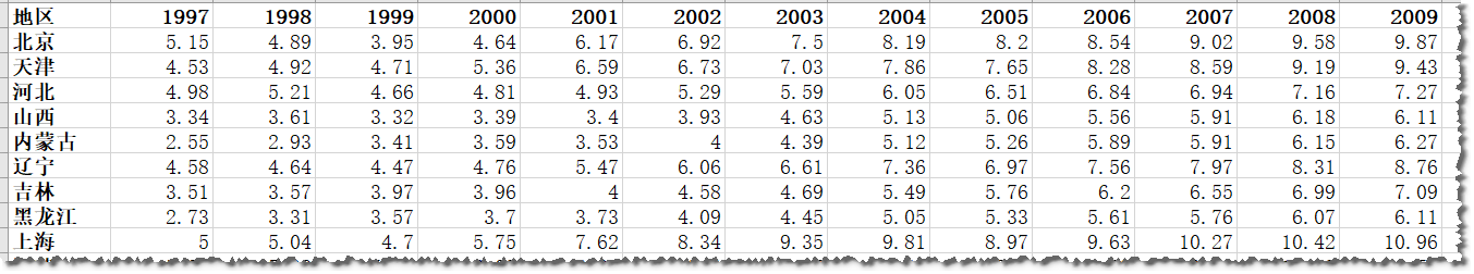 中国市场化指数-1997-2009,省市级