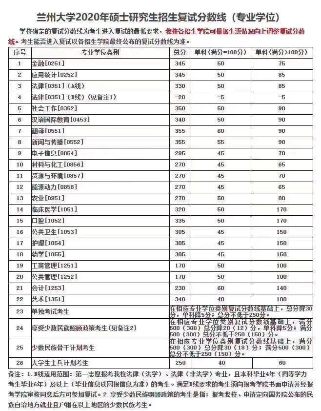 兰州大学专硕2020分数线