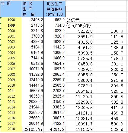 年鉴上查得名义GDP、GDP指数:以1978年=100 某一年基期GDP=100,例如以2000年为基期,即2000=100 以2000年为基期(i年)的指数=i年1978年=100指数/1978年=100指数 实际GDP=i年名义GDP*i年GDP指数(1978年=100)