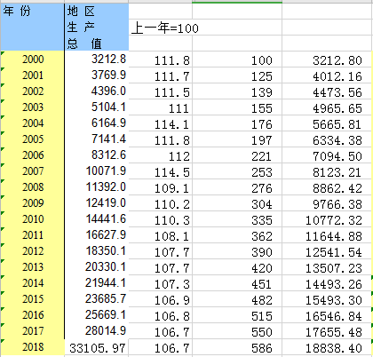 为什么两种方法算出来的结果,也就是以2000年为基期的GDP指数不一致呢???