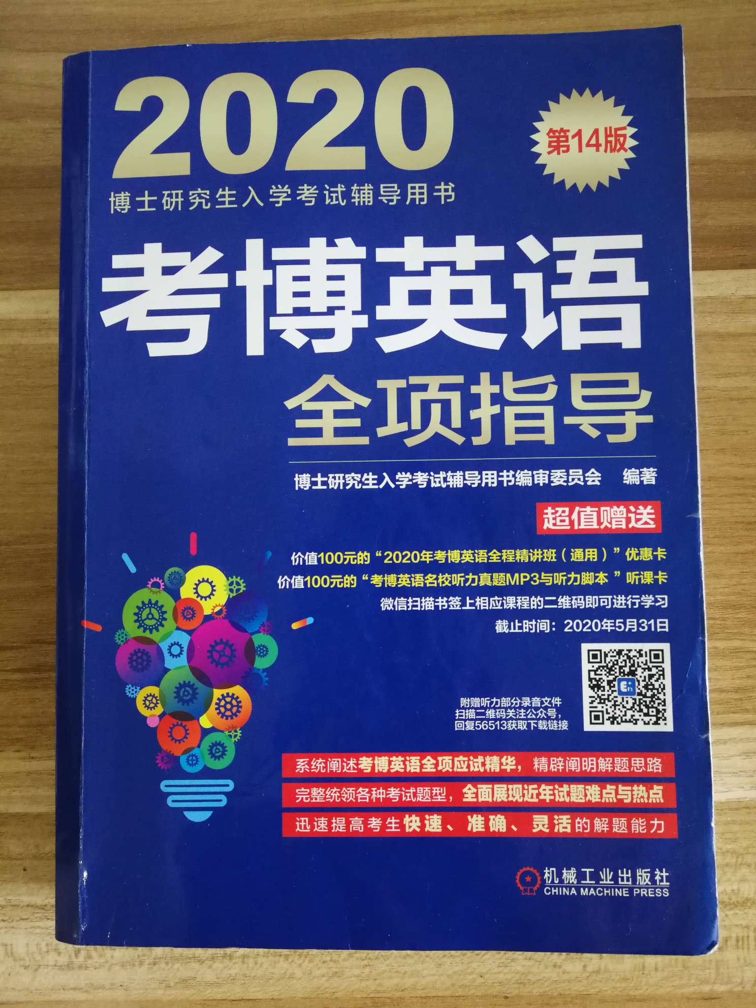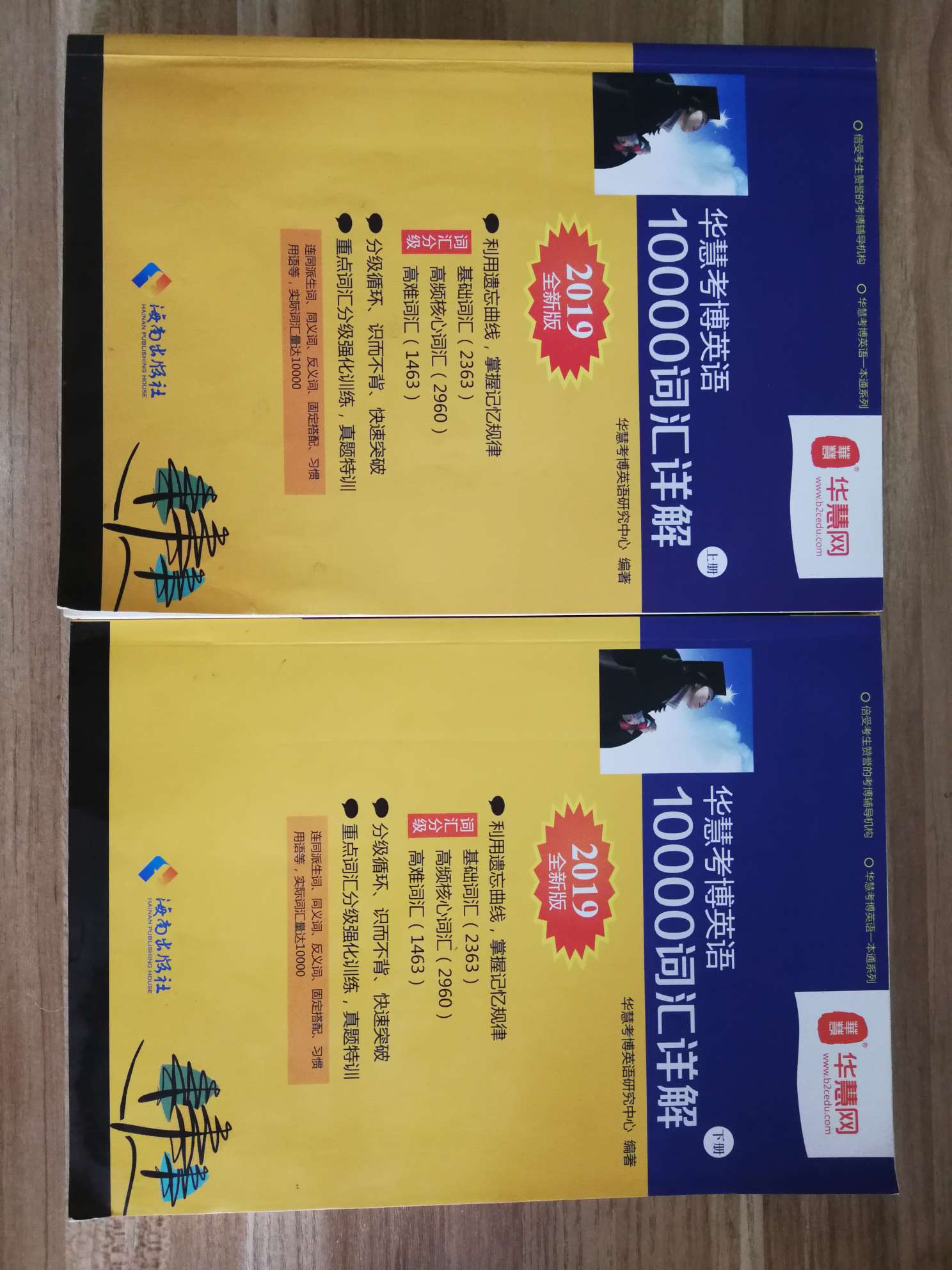 2020年考博英语全套资料。2019华慧考博英语10000词汇详解(海南出版社,95成新),2020考博英语全项指导(机械工业出版社,95成新),全国名校考博英语历年真题及详解(圣才考研网,全新未拆封)。原价175元,现80元出售。有意者请联系18810442256。