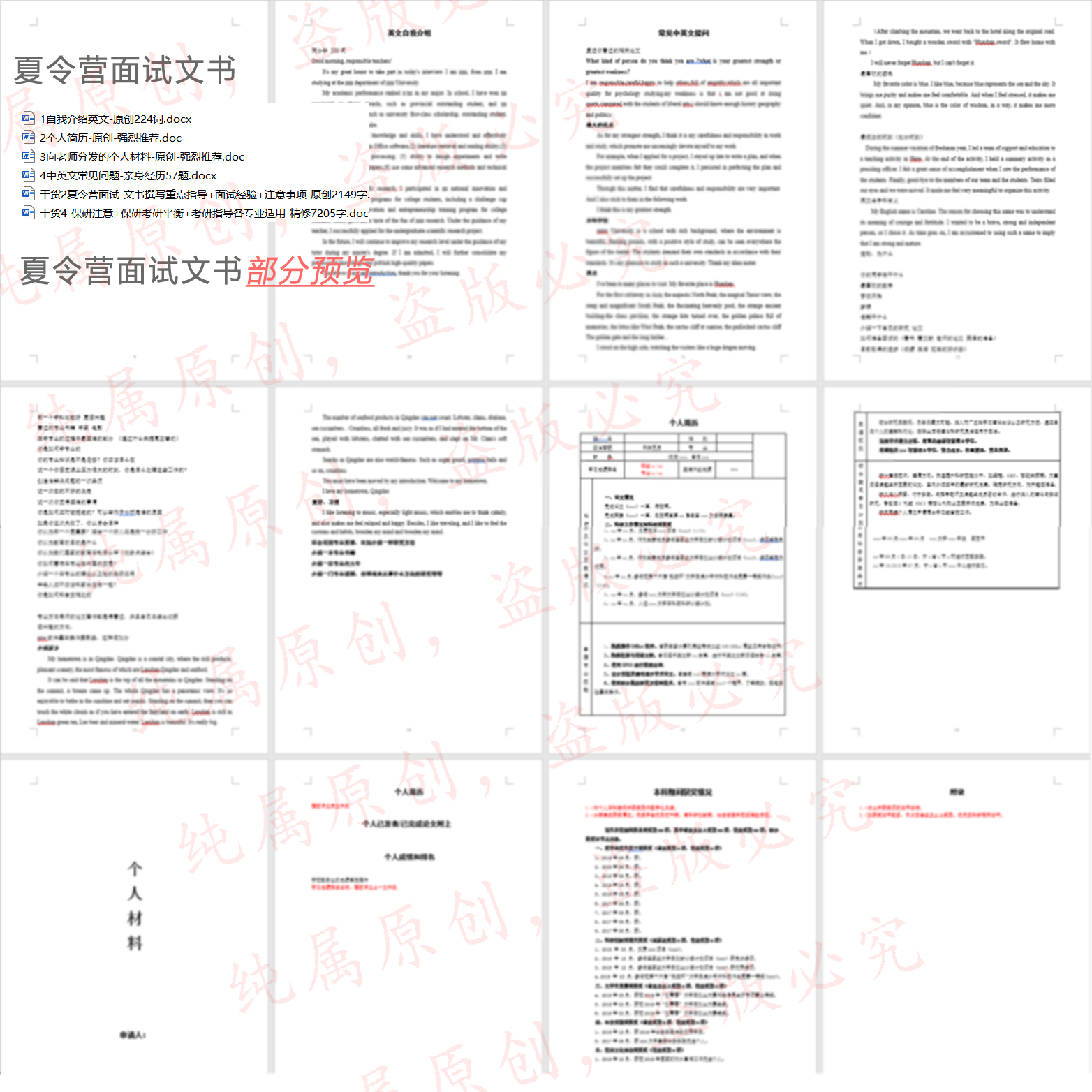 近期时间比较多,又码又整理了各专业通用的保研夏令营经验,包括文书书写重点、面试资料、夏令营定位方法、参营经验,总共有30页+!