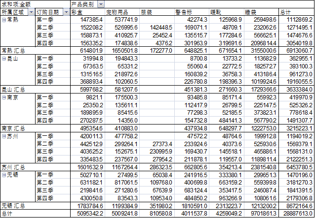 想要分出,比如常熟的第一、二、三、四季度的金额,最后出来这个效果,该怎么办啊,谢谢谢谢!