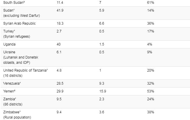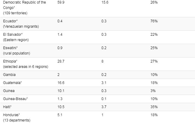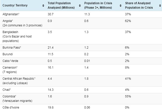 Source: GRFC 2020, Table 5 – Peak numbers of acutely food-insecure people in countries with food crises, 2019