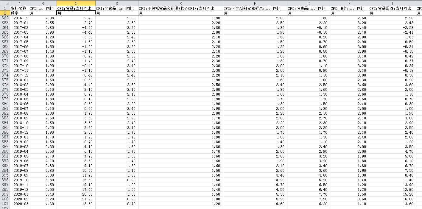 CPI当月同比数据大全