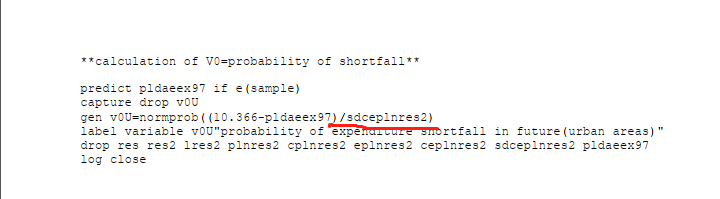 Ada9199 发表于 2020-7-26 20:52 根据贫困脆弱性的公式来看,分母是消费对数方差的开方,所以sdc eplnres2会不会是作者新令的变量名,但是定 ...