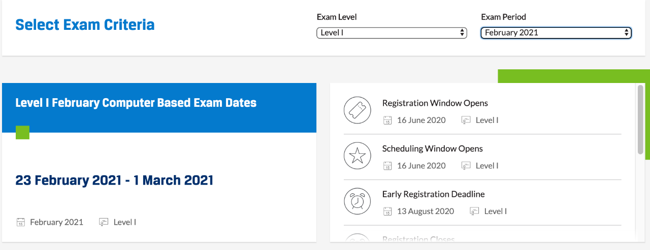 目前还没轮到2020.6CFA一级的小伙伴做延考选择,根据之前的邮件提醒,应该会在5.11-5.15陆续收到选择邮件,以防大家收到邮件就冲动选择,这里提醒一下理论上的最终决策时间以及选择2020.12和2021.2的对比分析。