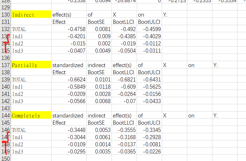一般来说中介效应值应该从Indirect里面看,为什么我的中介效应值乘起来却等于Completely里面的数值呢?