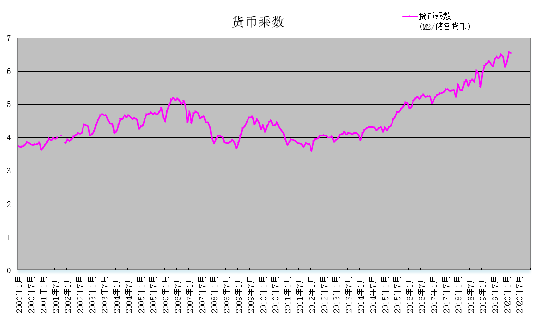 现代金融货币体系,一定离不开一个概念货币乘数。货币乘数=(M0+各项存款)/基础货币=M2/基础货币。