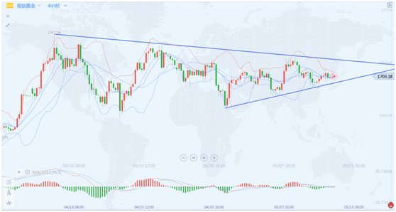 黄金:金价靠近三角形下方支撑1697-98附近多,损在1690,上方1715-1720承压。