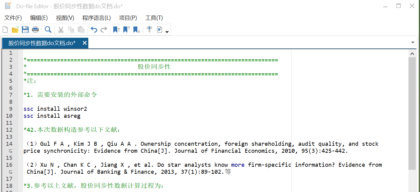 数据构造参考文献:(1)Gul F A , Kim J B , Qiu A A . Ownership concentration, foreign shareholding, audit quality, and stock price synchronicity: Evidence from China[J]. Journal of Financial Economics, 2010, 95(3):425-442.等(具体看附件)