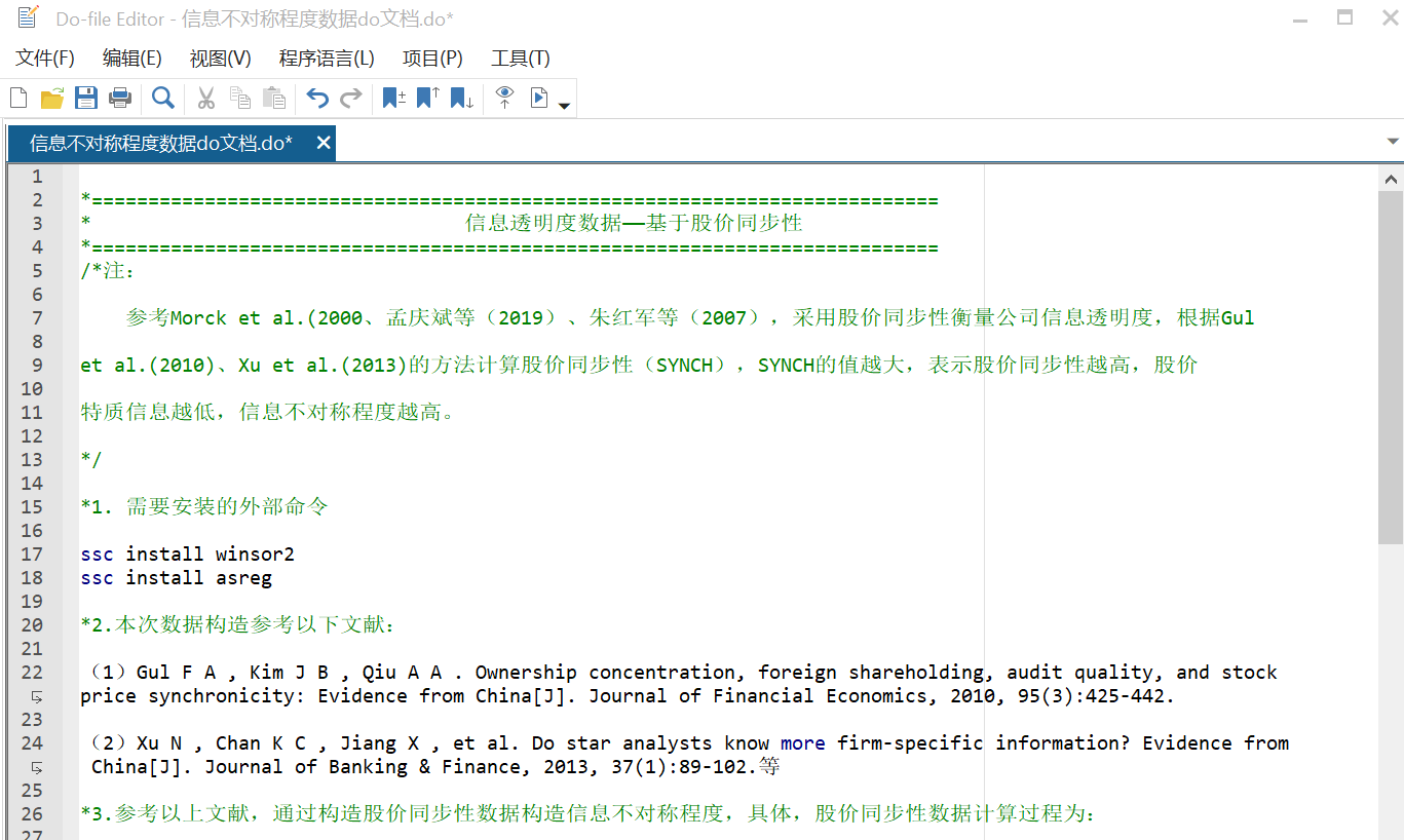 数据构造参考文献:(1)Gul F A , Kim J B , Qiu A A . Ownership concentration, foreign shareholding, audit quality, and stock price synchronicity: Evidence from China[J]. Journal of Financial Economics, 2010, 95(3):425-442.