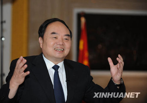 资料图片:时任教育部部长周济在接受记者采访。新华社记者 丁林 摄