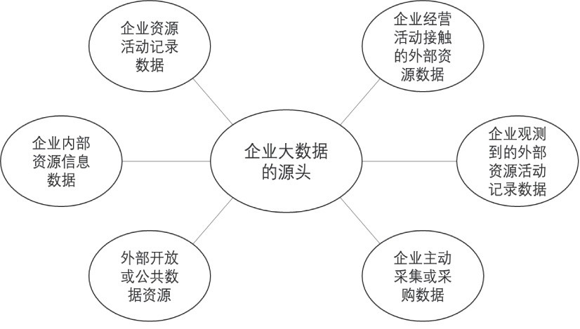本章探讨的企业大数据会将重点放到企业内部大数据上,这里的“内部”更多的是从数据拥有方式上定义的,指企业所能够自主拥有的大数据,具有“自主产权”的数据,包括企业主动采集或者采购的外部数据。